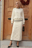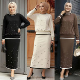 بلوز دامن وارداتی روی کار مروارید کار شده نخ پنبه تریکو فری سایز ۳۴الی۴۶